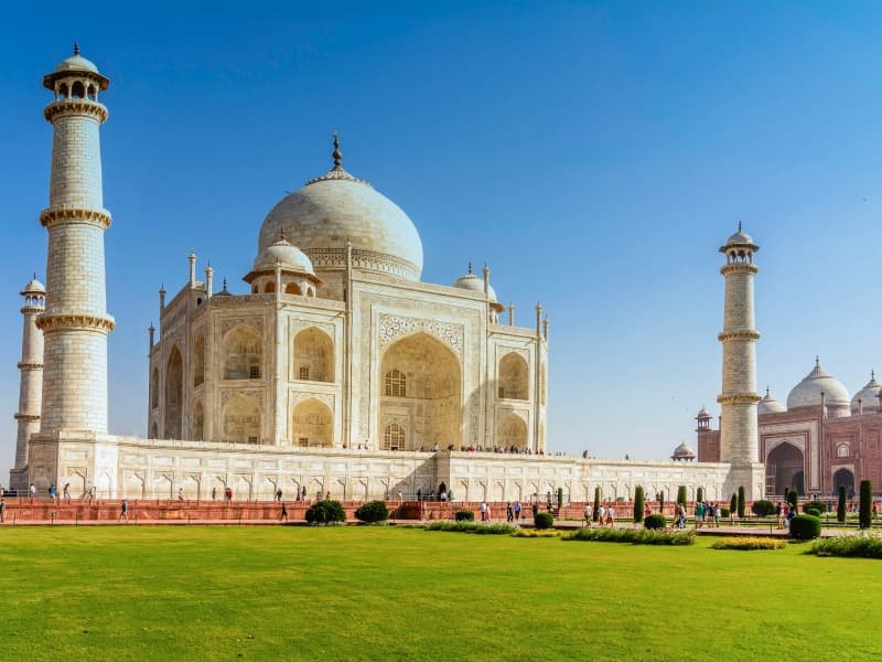 - Le Taj Mahal, symbole intemporel de l’Inde, bijou de marbre blanc délicatement ciselé.